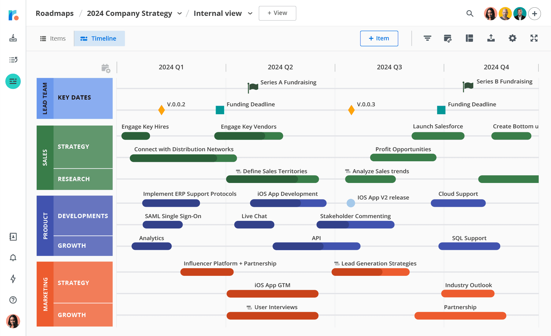 Internal roadmaps are for your product team and other internal stakeholders. They provide a detailed view of your product development plan, helping to coordinate efforts and ensure everyone is aligned.