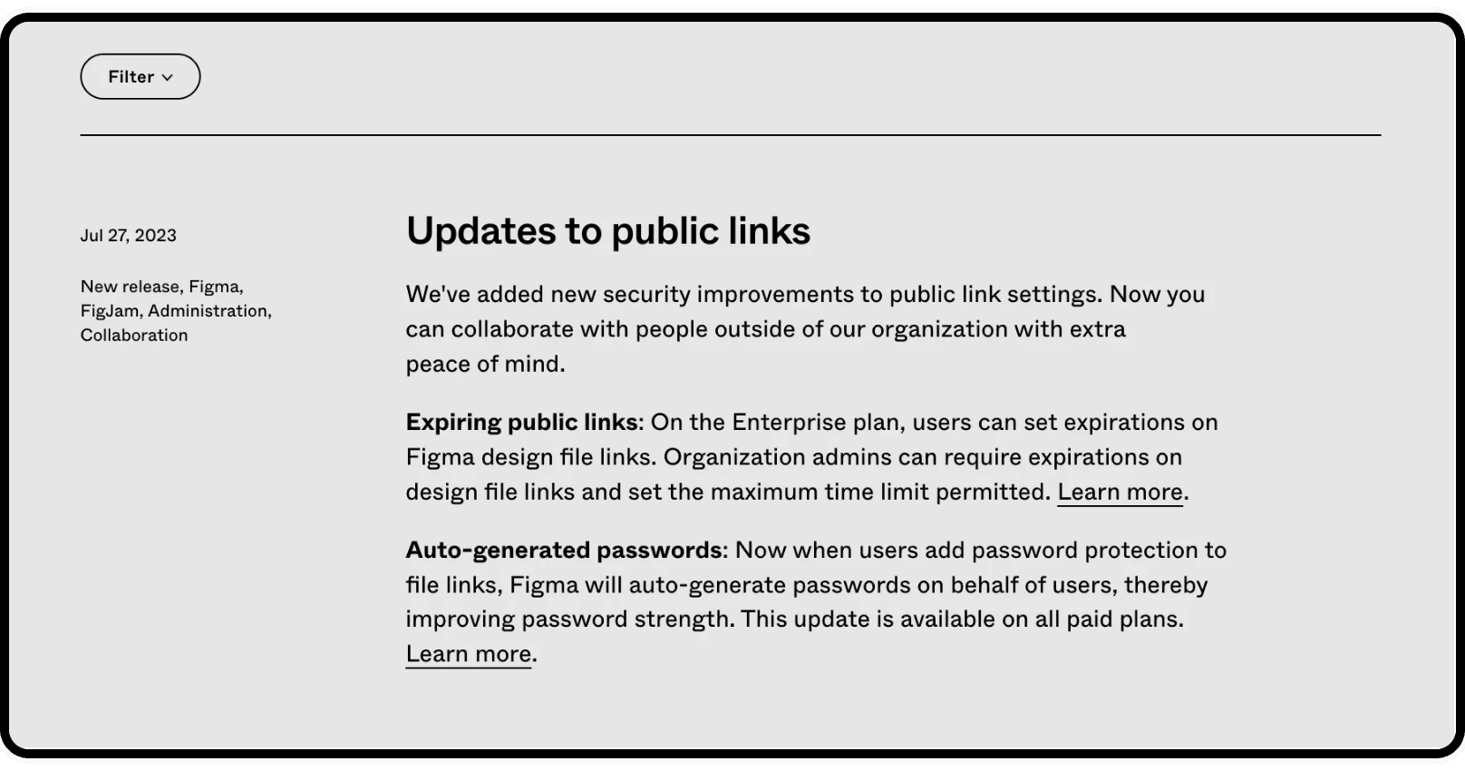 Figma's not just throwing updates at us; they're telling us stories. Big updates aren't just lines in a changelog; they're headlines. It's a breath of fresh air in a world of endless, bland release notes. They know their audience, and they're speaking our language